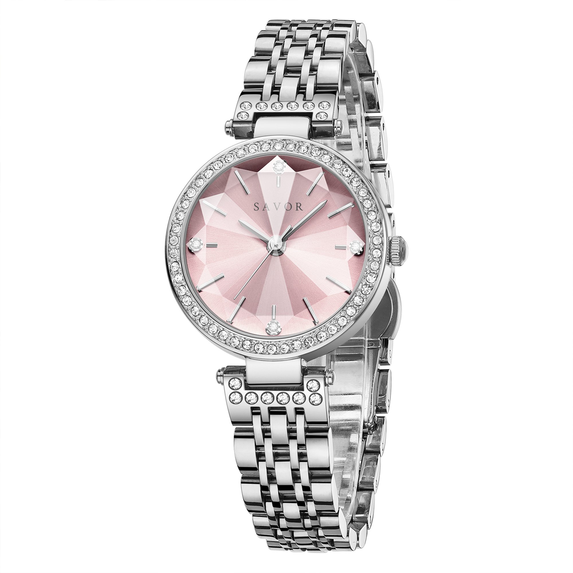 - ساعة فضية نسائية بحركة Quartz الدقيقة تضمن الدقة المطلقة في ضبط الوقت.
