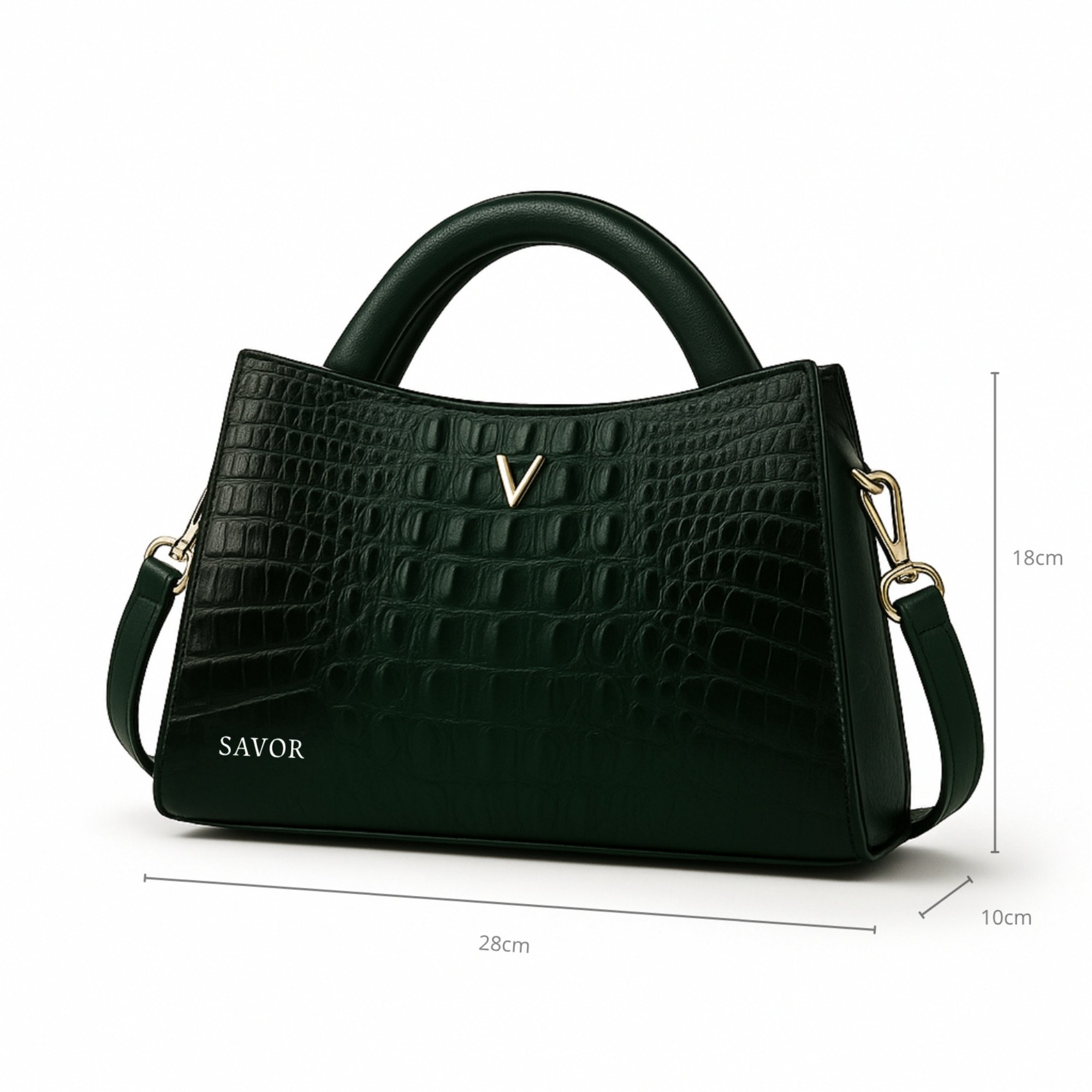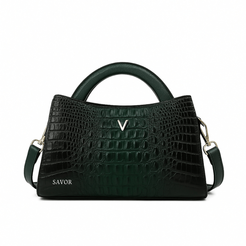 صُممت حقيبة Mystic Green لتكون قطعة فنية تجمع بين الرقي والتميّز. اللون الأخضر العميق يعبّر عن القوة والهدوء في آنٍ واحد، بتفاصيل فاخرة ونقشة جلد التمساح التي تضيف طابعًا مميزًا لإطلالتك اليومية أو المسائية